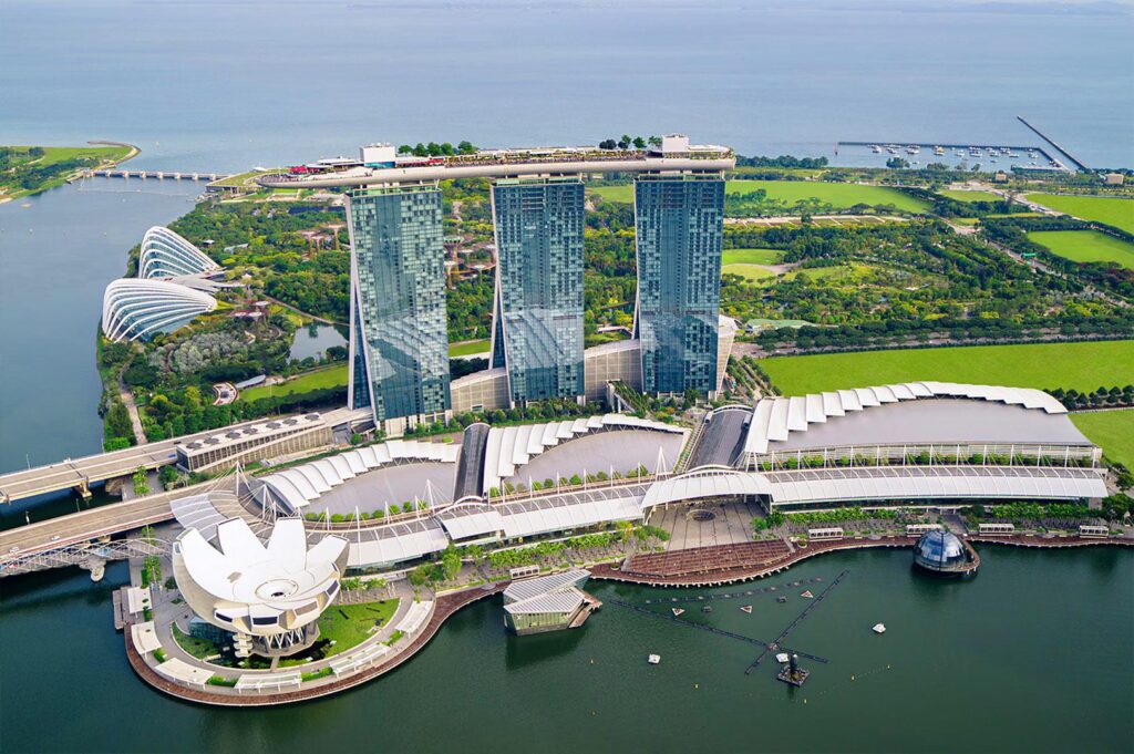 Marina Bay Sands is an iconic symbol of Singapore city tourism. It offers a blend of luxury shopping, world-class restaurants, and breathtaking views of the city skyline.